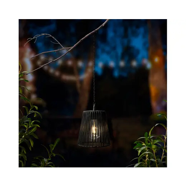 Diese dekorative Hängeleuchte bringt eine warme und einladende Atmosphäre in Garten, Terrasse oder Balkon. Sie setzt gezielte Lichtakzente und verleiht Außenbereichen eine harmonische, wohnliche Ausstrahlung. Ob über dem Gartentisch, in einer Pergola oder an einem überdachten Sitzplatz - sie schafft ein angenehmes Ambiente für entspannte Abende im Freien. Durch ihr zeitloses und natürliche wirkendes Design lässt sich die Hängeleuchte vielseitig kombinieren und fügt sich mühelos in unterschiedliche Outdoor-Stile ein. Sie ergänzt moderne Außenbereiche ebenso stimmig wie rustikale oder mediterrane Konzepte und sorgt dabei für ein ausgewogenes Zusammenspiel von Licht und Dekoration. Die Hängeleuchte eignet sich ideal, um gemütliche Rückzugsorte zu gestalten oder besondere Bereiche optisch hervorzuheben. Sie wirkt sowohl einzeln als dekoratives Highlight als auch in Kombination mit mehreren Leuchten besonders stimmungsvoll. So entstehen individuelle Lichtinseln, die zum Verweilen und Genießen einladen. Dank ihrer unkomplizierten Nutzung ist diese Hängeleuchte eine attraktive Lösung für alle, die Außenbereiche ohne großen Aufwand aufwerten möchten. Sie verbindet dekorative Wirkung mit einer angenehmen Lichtstimmung und unterstützt ein entspanntes, natürliches Outdoor-Erlebnis. Ob für private Gärten, Terrassen, Balkone oder für dekorative Präsentationen im Handel - diese Hängeleuchte ist eine geschmackvolle Wahl für alle, die Wert auf Atmosphäre, Design und zeitgemäße Außenbeleuchtung legen.