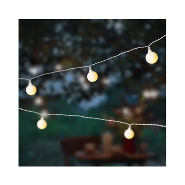 Die dekorative Solar-Lichterkette bringt warmweißes Licht und sommerliche Atmosphäre in Garten, Balkon oder auf die Terrasse. Ausgestattet mit 30 warmweißen LEDs sorgt die Cherry-Beleuchtung für eine gleichmäßige, gemütliche Ausleuchtung - ideal als Gartendeko, Balkonbeleuchtung oder stimmungsvolle Outdoor-Beleuchtung. Dank Solarbetrieb lädt sich die LED-Lichterkette tagsüber umweltfreundlich auf und leuchtet abends bis zu 6 Stunden ganz ohne Stromanschluss. Perfekt für trendige Outdoor-Dekorationen und saisonale Verkaufsflächen.