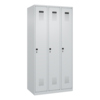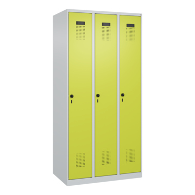 Garderobenschrank Evolo PLUS mit hochwertiger Einbrennbeschichtung für hohe UV- und Korrosionsbeständigkeit. Geschlossene und abgeschrägte Seitenprofile für leichte Innenreinigung und komfortable Entnahme von Kleidung. Türen mit Soft-Anschlag und geschlossenen Seitenprofilen für höchste Stabilität, mit reinigungsfreundlichem Belüftungslochbild oben und unten. Aufhängung in stabilen Drehbolzen. 2 ergonomische Sicherheits-Drehriegel für Vorhangschlösser mit Bügelstärke 6 bis 8 mm. Inkl. Tür-Schutz. Mit schwarzen, selbstklebenden Kunststoff-Etikettenrahmen, inkl. Klarsichtkunststoff-Abdeckung und weißem Etikett zur individuellen Beschriftung. Achtung: Anlieferungsmöglichkeit durch Sattelschlepper muss gegeben sein.
