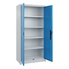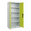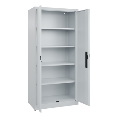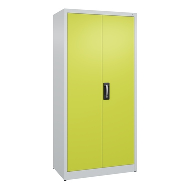 Büroschrank Acurado. Korpus aus stabiler Stahlkonstruktion mit hochwertiger Einbrennbeschichtung für hohe UV-Beständigkeit. Mit Bodengleitern als praktischem Schrank- und Fußbodenschutz. Hohe Flexibilität der Inneneinrichtung durch Höhenverstellbarkeit im Raster. Türen mit geschlossenen Seitenprofilen und verdeckten Schließstangen für höchste Stabilität und Einbruchsicherheit, mit Softanschlag. Türaufhängung oben und unten in Drehbolzen. 3-Riegeliges Ergo-Lock Griffschloss für optimale Bedienungssicherheit und Verschleißfestigkeit. Achtung: Anlieferungsmöglichkeit durch Sattelschlepper muss gegeben sein.