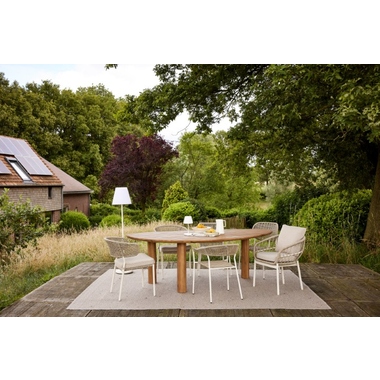 Der Tropea-Stuhl verleiht Ihrem Essbereich im Freien mit seinem eleganten Design einen Hauch von Stil. Sein robustes Gestell in Kombination mit Sitzfläche und Rückenlehne aus geflochtenem Seil garantiert Langlebigkeit und ein ansprechendes Design. Die farblich abgestimmten Kissen sorgen für zusätzlichen Komfort. Dieser Stuhl ist ideal, um entspannte Mahlzeiten zu genießen und Ihre Terrasse oder Ihren Garten optisch aufzuwerten.