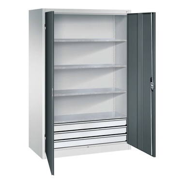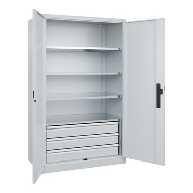 Werkzeugschrank mit Schubladen Acurado, Korpus aus stabiler Stahlkonstruktion mit hochwertiger Einbrennbeschichtung für hohe UV-Beständigkeit. Mit Bodengleitern als praktischer Schrank- und Fußbodenschutz. Hohe Flexibilität der Inneneinrichtung durch Höhenverstellbarkeit im Raster. Türen mit geschlossenen Seitenprofilen und verdeckten Schließstangen für höchste Stabilität und Einbruchsicherheit. Mit Soft-Anschlag. Türaufhängung in außen liegenden Scharnieren mit großzügigem Öffnungswinkel. 1 Ergo-Lock Griffschloss für optimale Bedienungssicherheit und Verschleißfestigkeit. Türen zueinander schlagend für gemeinsamen Verschluss. Achtung: Anlieferungsmöglichkeit durch Sattelschlepper muss gegeben sein.